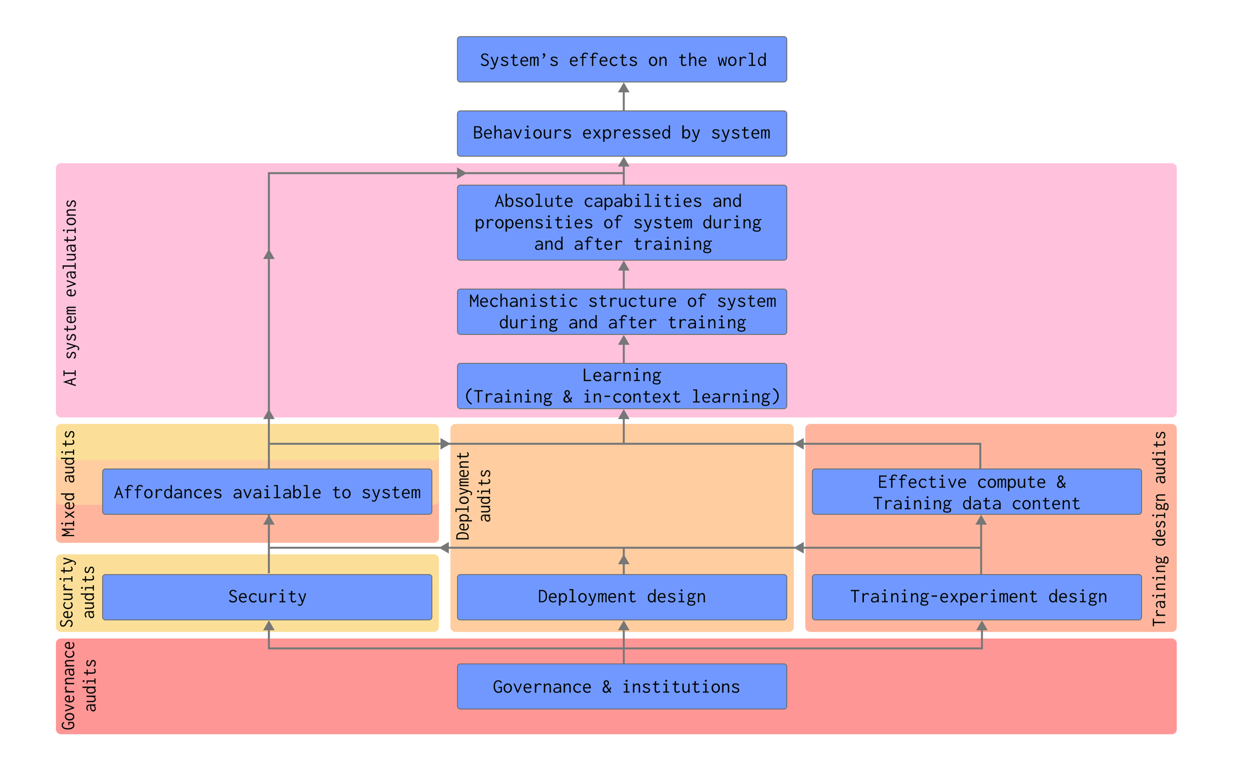 Governance audits look at the structure of the institutions developing, regulating, and auditing AI systems (and the interactions between those institutions) to ensure that they are conducive to safety.