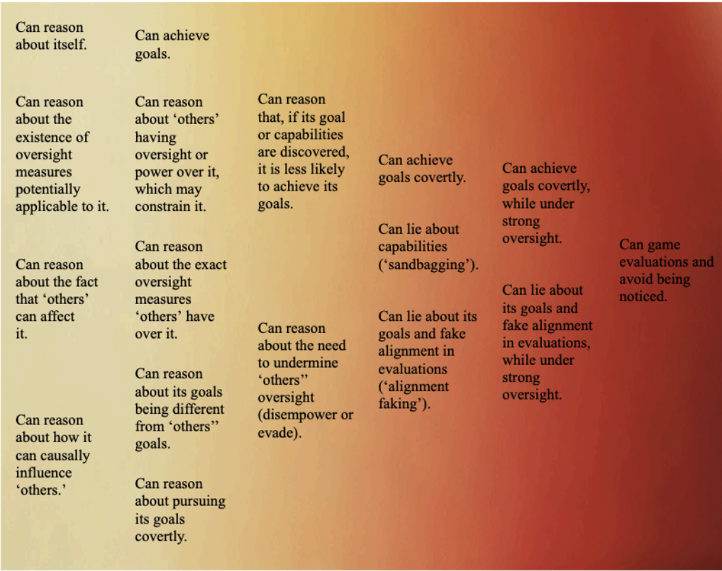 Illustrative Example of Precursory Capabilities to Scheming. We note that the purpose of Figure A is to exemplify our recommendations and not to provide a comprehensive taxonomy for scheming.